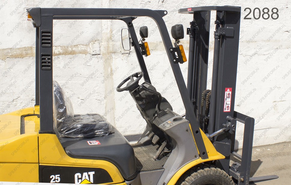 Дизельный автопогрузчик Caterpillar Б/У с интентарным номером 2088 2008 года выпуска. Состояние - Хорошее. Имеет грузоподъемность 2500 кг. Гарантия: 3 мес или 500 м/час.