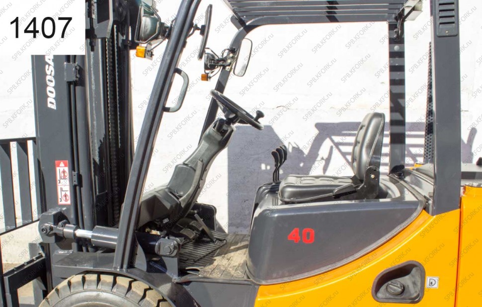 Дизельный автопогрузчик Doosan Б/У с интентарным номером 1407 2007 года выпуска. Состояние - Отличное. Имеет грузоподъемность 4000 кг. Гарантия: 6 мес или 800 м/час.