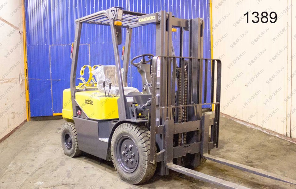 Газ-Бензиновый автопогрузчик Doosan Б/У с интентарным номером 1389 2007 года выпуска. Состояние - Отличное. Имеет грузоподъемность 2500 кг. Гарантия: 6 мес или 800 м/час.