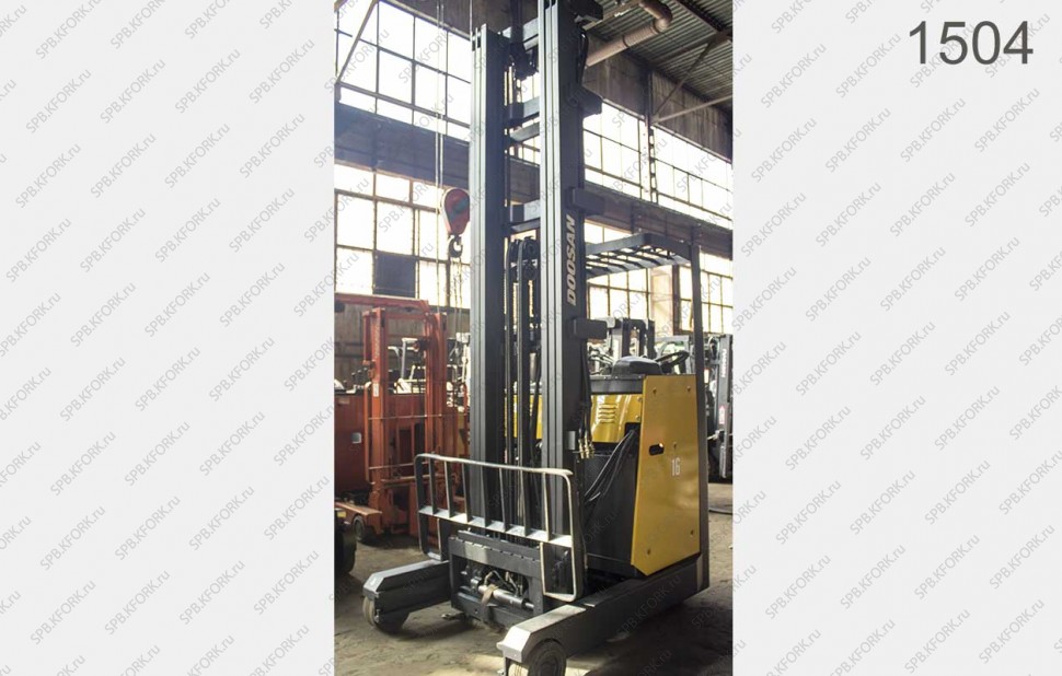 Электрический Ричтрак Doosan Б/У с интентарным номером 1504 2006 года выпуска. Состояние - Хорошее. Имеет грузоподъемность 1600 кг. Гарантия: 1 мес или 200 м/час.