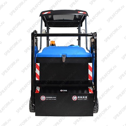 Гидравлический подъем бункера высотой до 135 см упрощает выгрузку мусора в высокие контейнеры. Производительность 10875 кв.м/ч и скорость движения 7,5 км/ч позволяют эффективно обслуживать обширные территории. Вместительный бункер на 150 литров минимизирует перерывы на опорожнение.