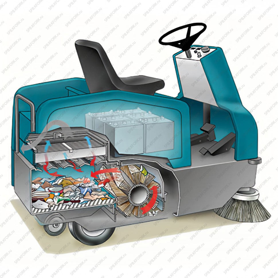 Автоматическая система AutoAdjust™ поддерживает оптимальное давление щетки при износе щетины, сохраняя стабильное качество уборки. Вместительный бункер объемом 85 л сокращает частоту остановок для выгрузки мусора. Фильтрующая система площадью 3.2 кв.м с технологией VCS™ эффективно очищает воздух от пыли, создавая безопасную рабочую среду.