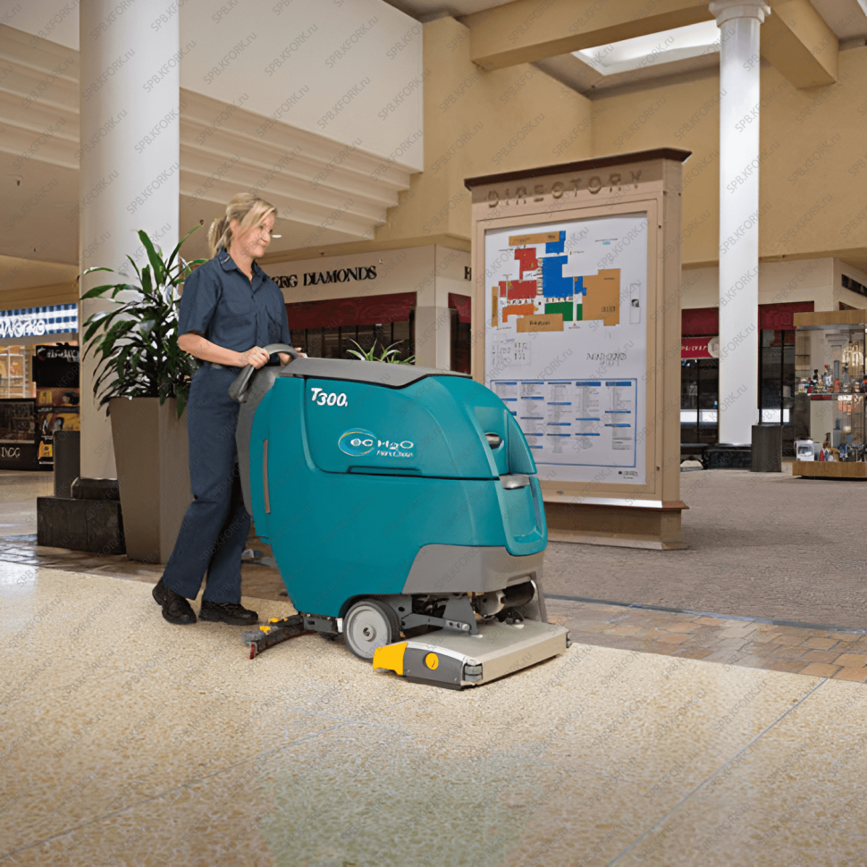Tennant T300e - это профессиональное решение для бесшумной и экологичной уборки с минимальными эксплуатационными затратами.